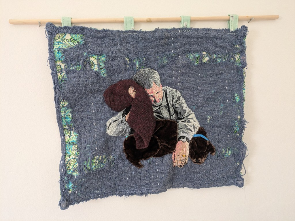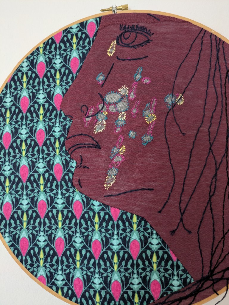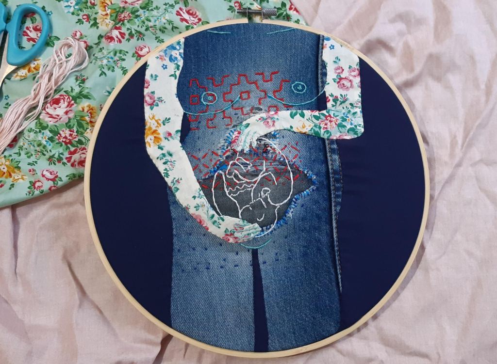 I’m Katie and I’m a textile artist based in Shrewsbury, Shropshire. I work with torn and reclaimed fabric which I mend with a variety of visible mending techniques including sashiko and darning. Within the frame of embroidery hoops I then transform the visible mend into an artwork with layers of embroidery and applique. I also create mixed media artworks incorporating ceramics mended in a kintsugi style.